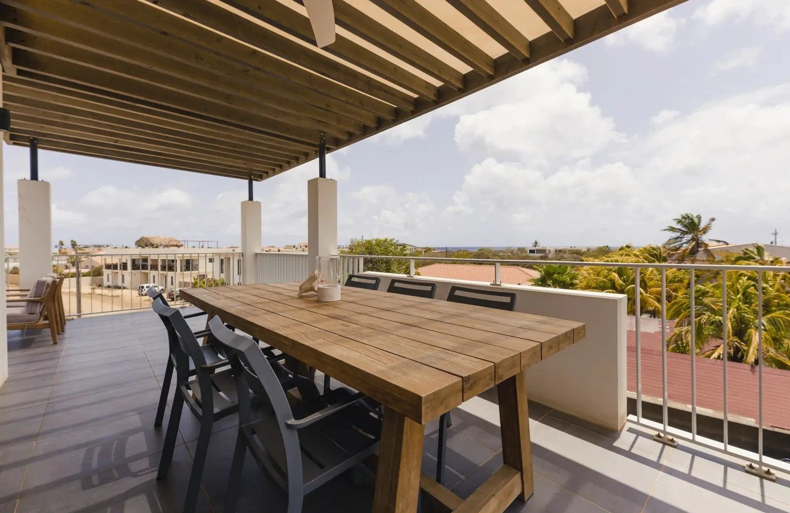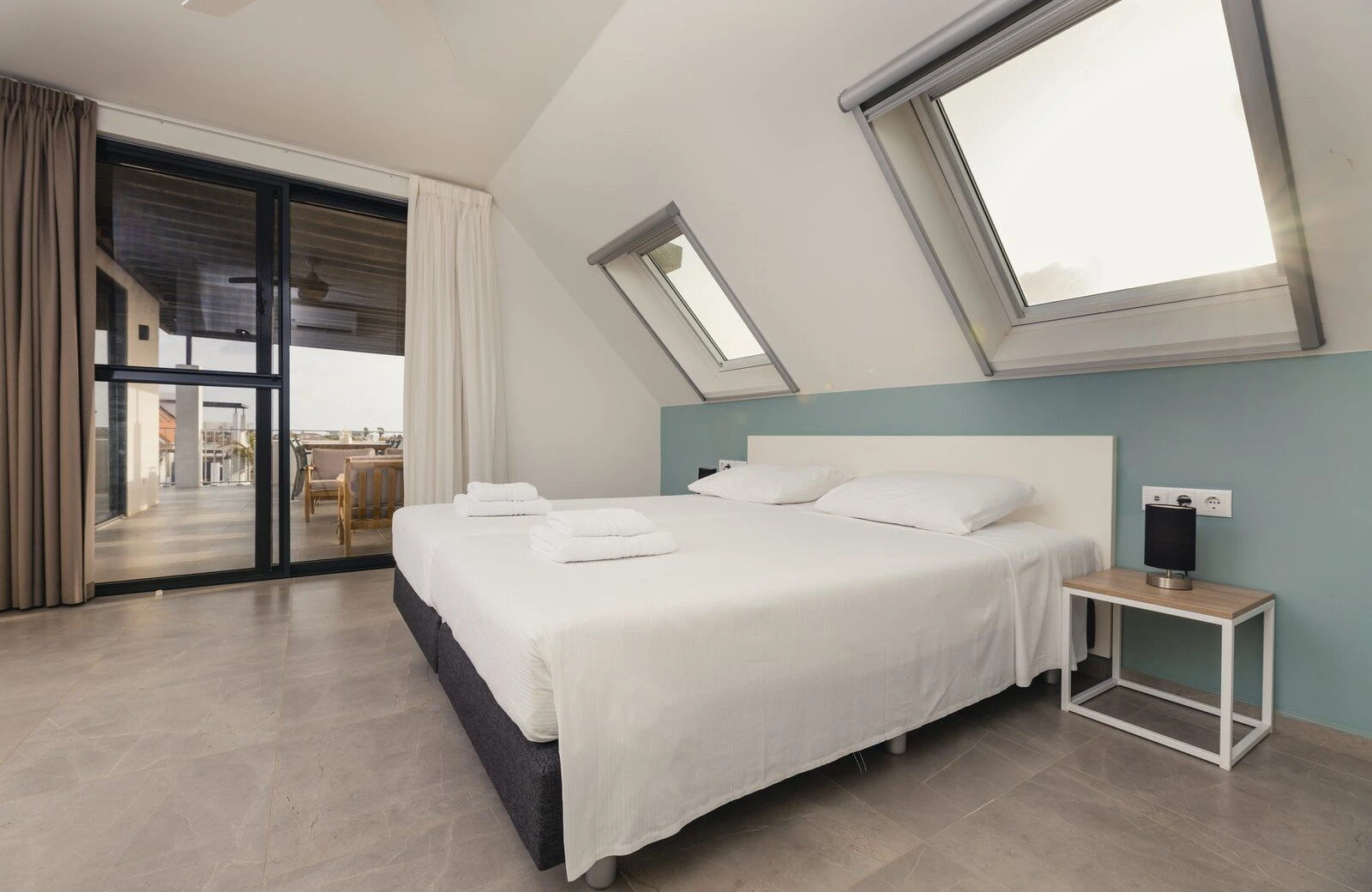 De Abundante+ is een luxe 6+2-persoons penthouse op Bonaire met drie slaapkamers, twee badkamers en een royaal overdekt zonneterras.