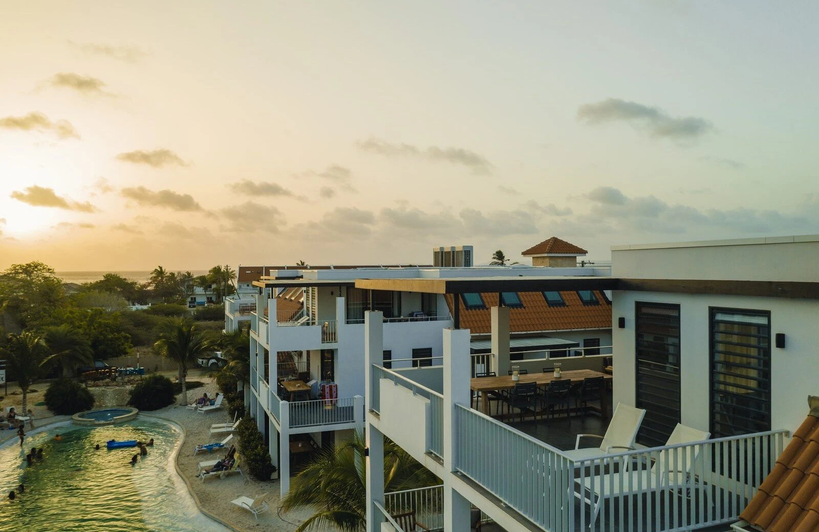 De Abundante+ is jouw royale 6+2-persoons penthouse op de tweede verdieping, met 86 tot 96 m² aan leefruimte en een adembenemend uitzicht over Bonaire. Vanuit je overdekte zonneterras geniet je van de Caribische zon en de verkoelende bries, terwijl de ruime living en de luxe keuken de perfecte setting vormen om samen te koken en te ontspannen.