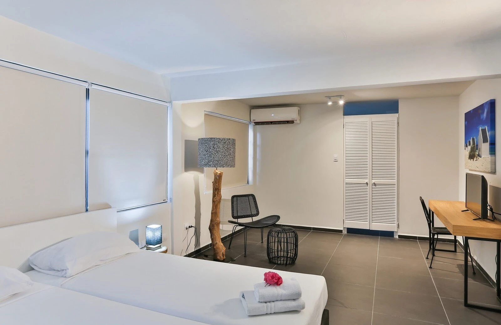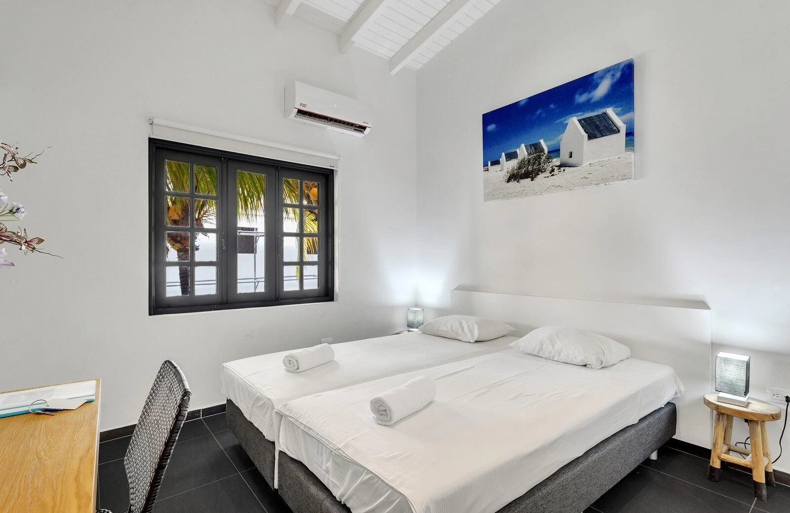 In ons hotel op Bonaire bieden we kamers aan voor 2 personen. De hotelkamers zijn modern ingericht in Caribische stijl en bieden je de luxe en het comfort dat je verwacht tijdens je verblijf in ons hotel op Bonaire in Kralendijk. Je kamer beschikt over heerlijke boxspringbedden en airco zodat niets je nachtrust in de weg staat. Ook heb je de beschikking over een televisie. Ga je op vakantie met meer dan 2 personen? Dan kun je bij ons ook een appartement op Bonaire huren, geschikt voor maximaal 8 personen.